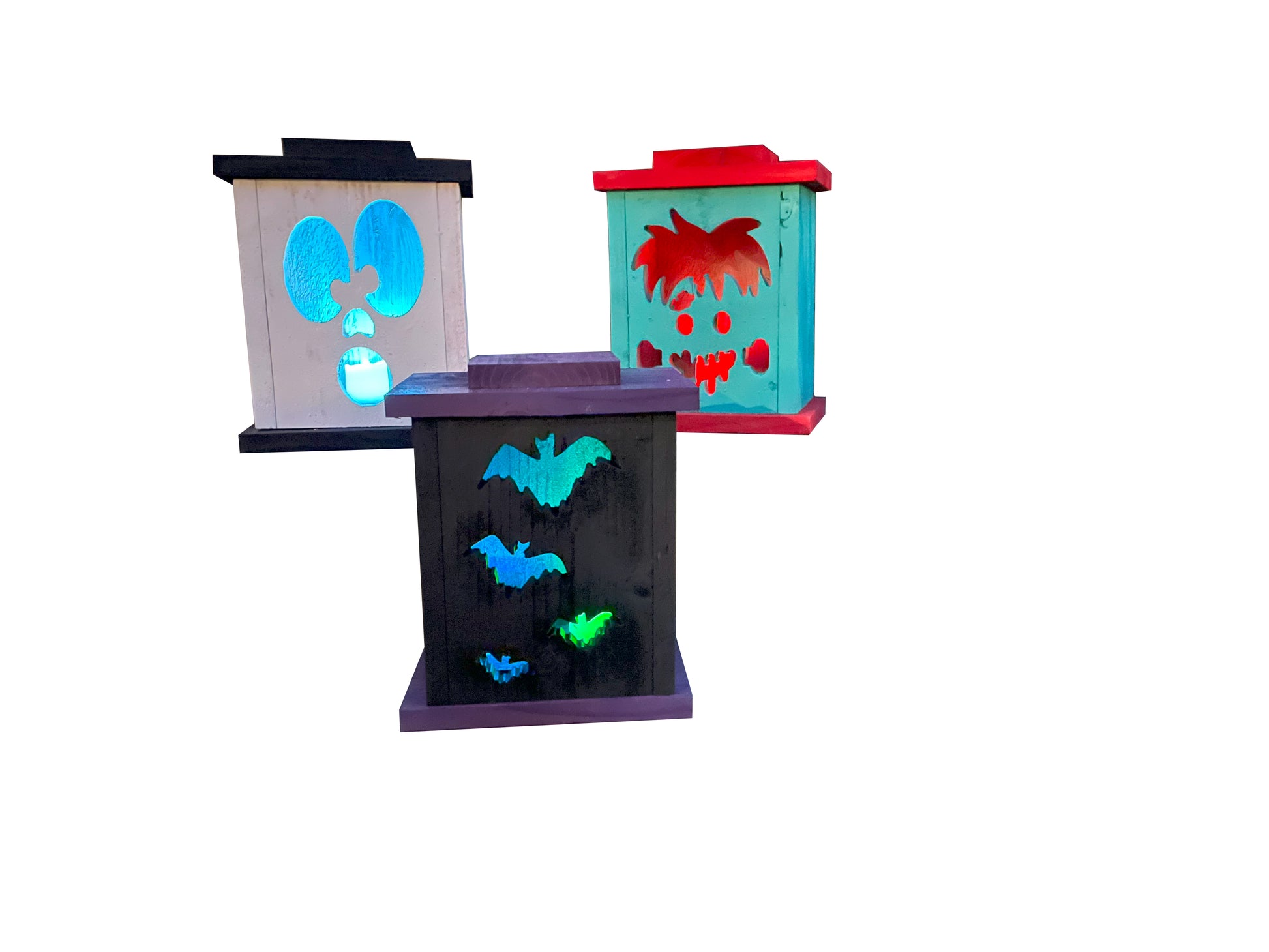 Adorable painted cedar Jack O' Lanterns! They are made of durable insect-repelling cedar suitable for extreme weather and external components. These cedar spooky face Jack O' Lanterns will last years!
